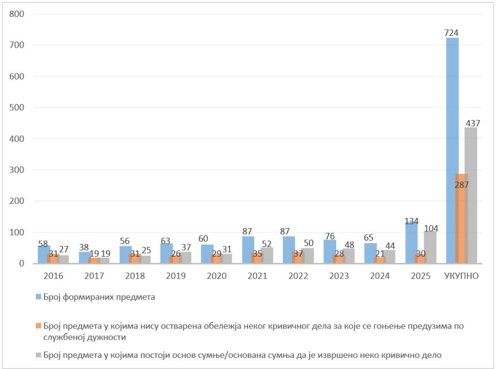 - u 139 predmeta doneta je službena beleška da nema mesta pokretanju krivičnog postupka;